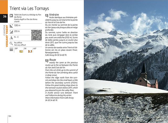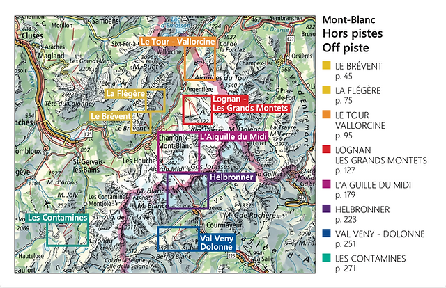 Each of the 100+ routes has a photo topo along with a description in both English and French. Access info, along with avalanche and general safety info, is also included. There are many guide books to the Mont Blanc area but Mont Blanc Off Piste from Vamos is without doubt one of the most up to date and relevant out there.
